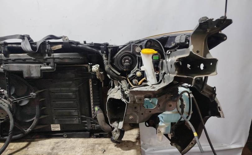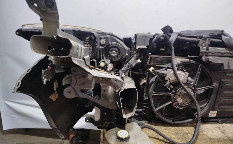 Состав комплекта: Бампер Перед; Фара Лево; Туманка Лево; Туманка Право; Рамка радиатора; Жесткость бампера Перед; Радиатор кондиционера; Фара Право; Блок управления вентилятором; Бачок омывателя; Радиатор охлаждения двс; Бачок расширительный; Решетка радиатора;