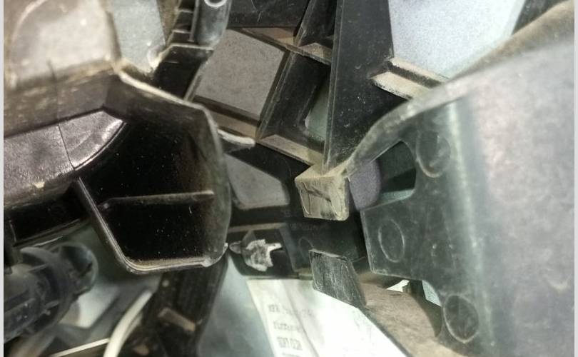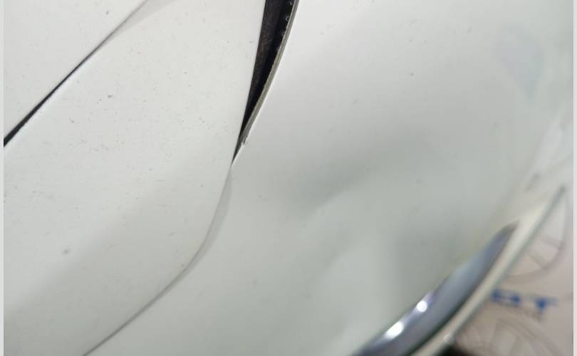 Вмятина на левой стороне бампера у форсунки обывателя фары, царапины и дефект крепления правой фары к бамперу.
