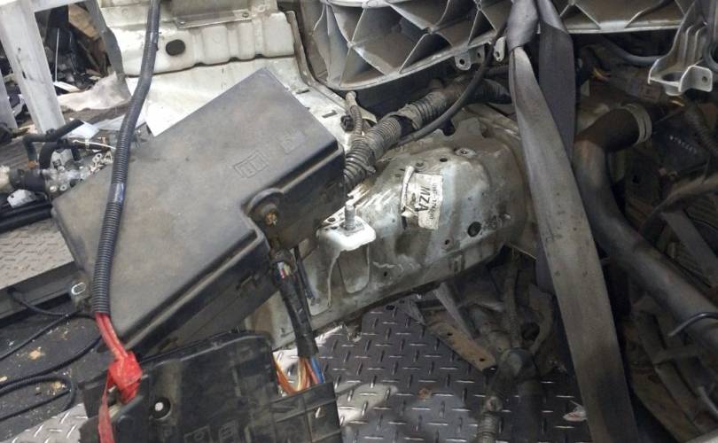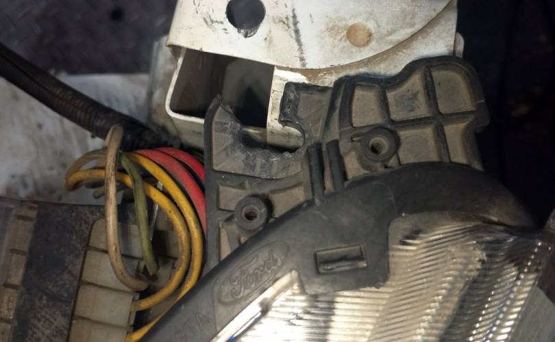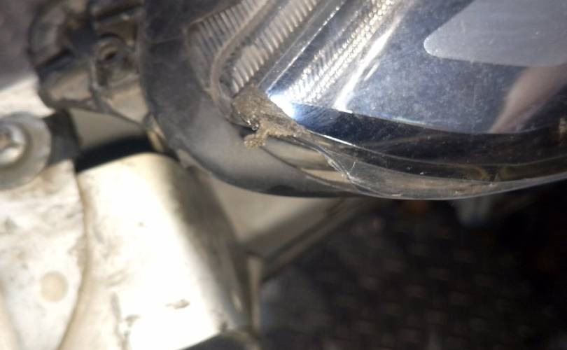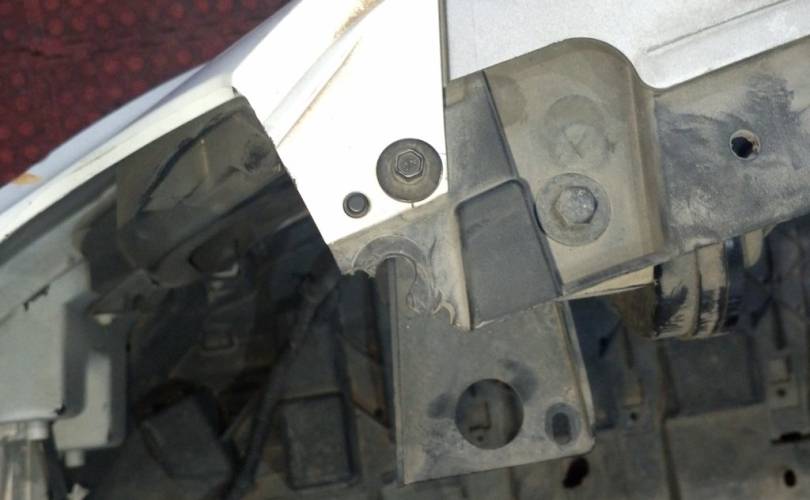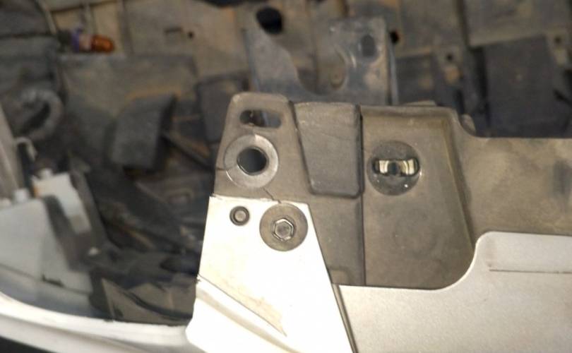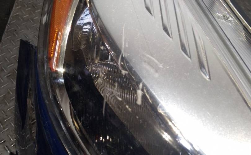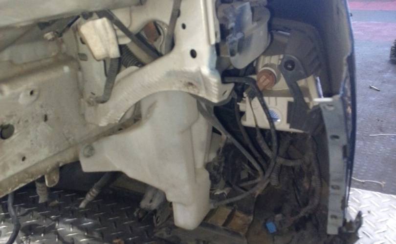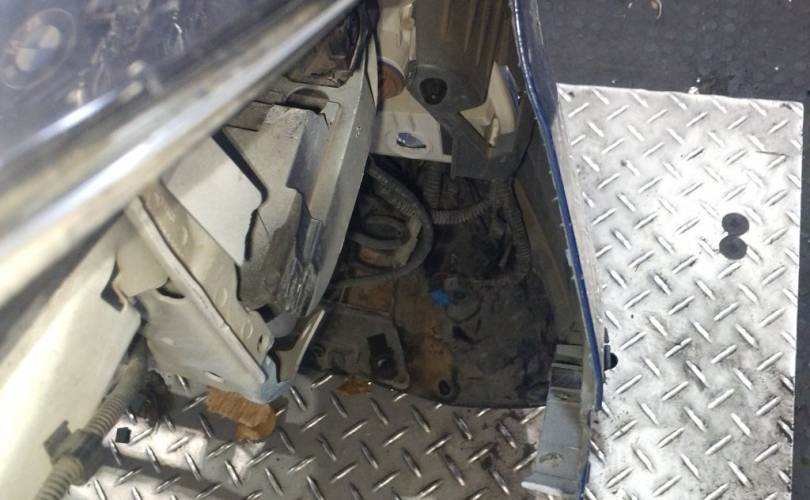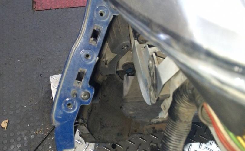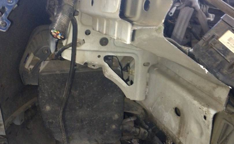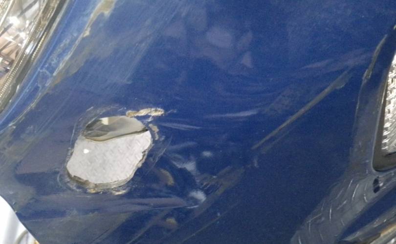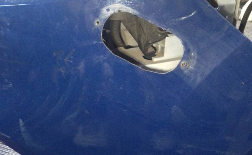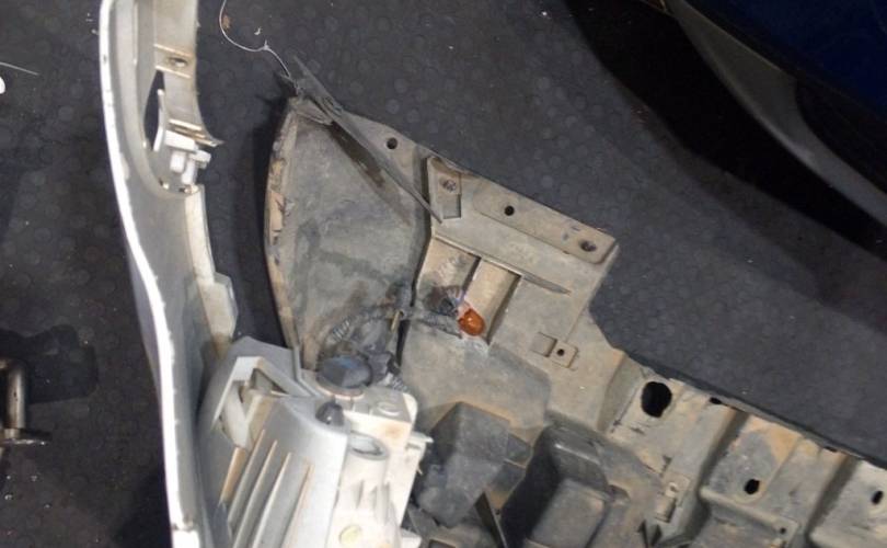 отверстия под спец сигналы, дефект креплений фар нижних, дефект передней панели(сломано с права), царапины на стекле правой фары скол, царапины на право стороне бампера. крашенный бампер в синий, левый руль, сломано крепление бампера с права. Можем поменять бампер на белый без отверстий под спецсигналы, но сломаны оба крепления к крыльям