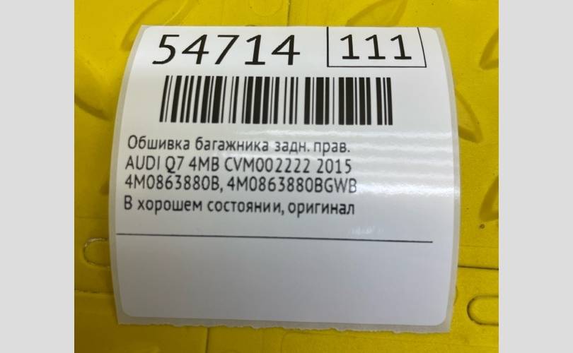 Обшивка багажника AUDI Q7 2015 4M0863880BGWB 4MB CVM002222, задняя правая