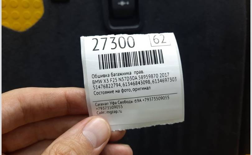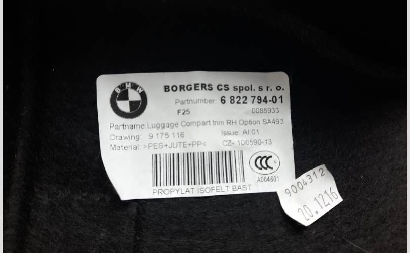 Обшивка багажника BMW X3 2017 51476822794 F25 N57D30A 58959870, правая