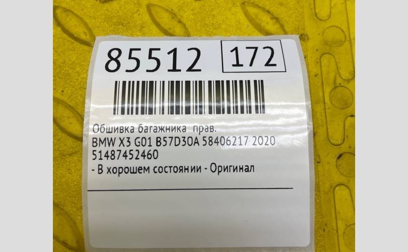 Обшивка багажника BMW X3 2020 51487452460 G01 B57D30A 58406217, правая