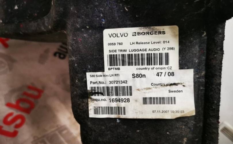 Обшивка багажного отделения Volvo S80 30721342, левая
