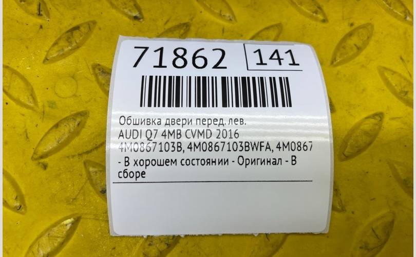 Обшивка двери AUDI Q7 2016 4M0867103BWFA 4MB CVM011957, передняя левая