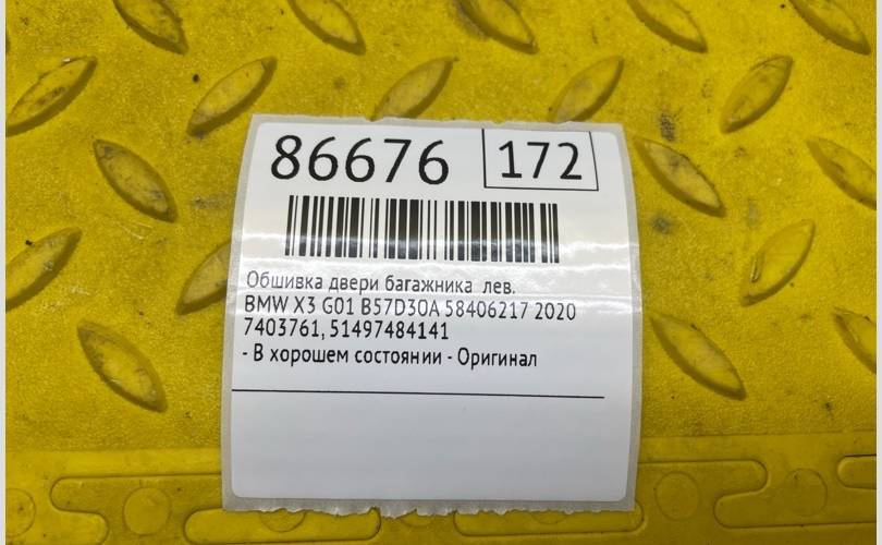 Обшивка двери багажника BMW X3 2020 51497484141 G01 B57D30A 58406217, левая