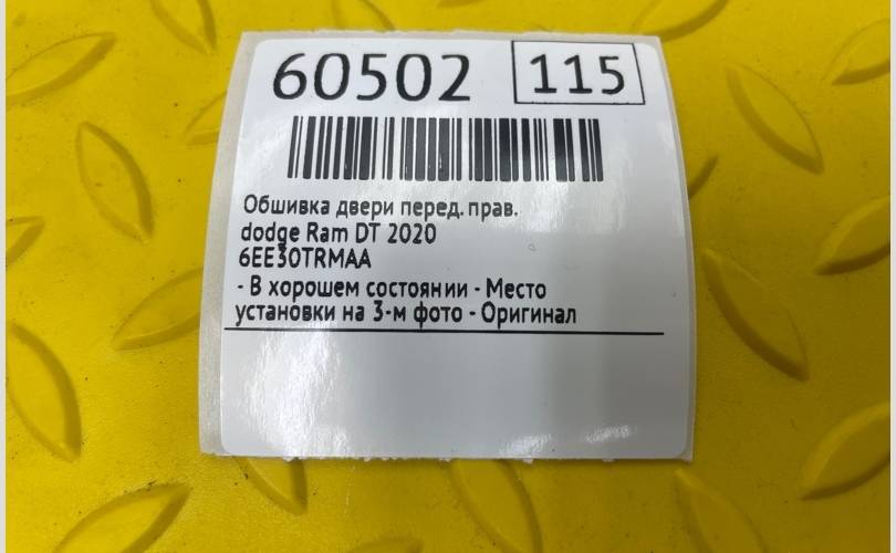 Запчасть снята с: dodge Ram 2020 DT