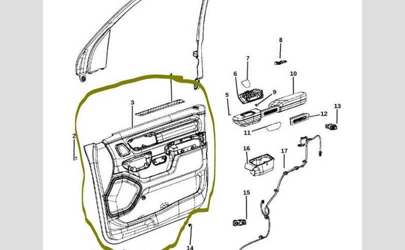 Обшивка двери dodge Ram 2020 6EE30TRMAA DT, передняя правая