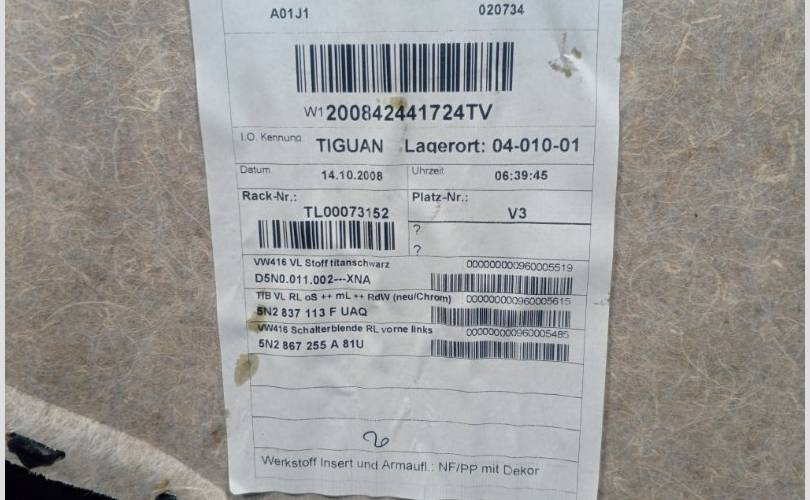Обшивка двери передней левой Volkswagen Tiguan 5N0867011 5N1 CAW