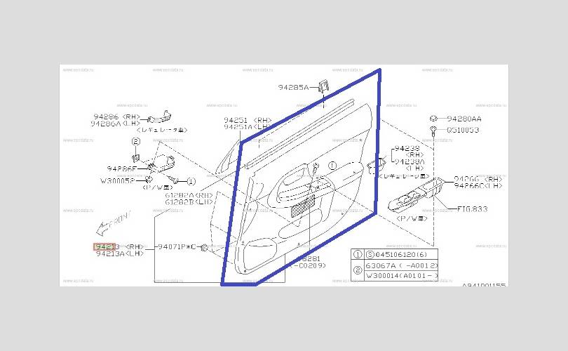 Обшивка двери Subaru Impreza WRX STI 2002 - 2007 94232FE700OE GD, передняя правая
