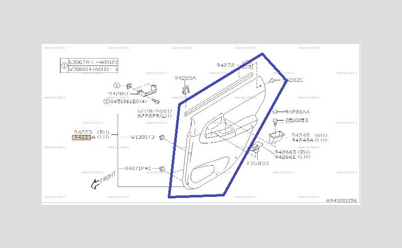 Обшивка двери Subaru Impreza WRX STI 2002 - 2007 94242FE070OE GD, задняя левая