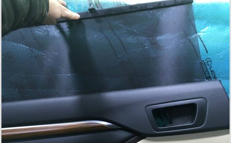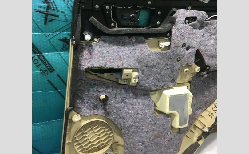 Обшивка двери задней левой в сборе со шторкой, Toyota Highlander 3 2019г, цвет комбинированный черный с бежевым, в хорошем состоянии