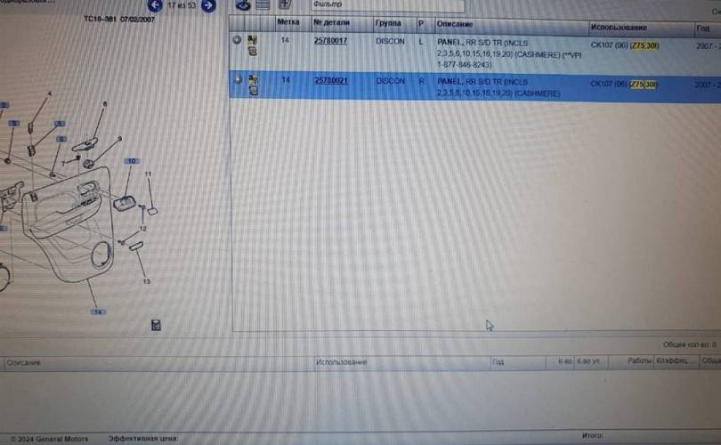 Обшивка двери дверная карта задней правой для Cadillac Escalade III 2006-2014 г. 25780021