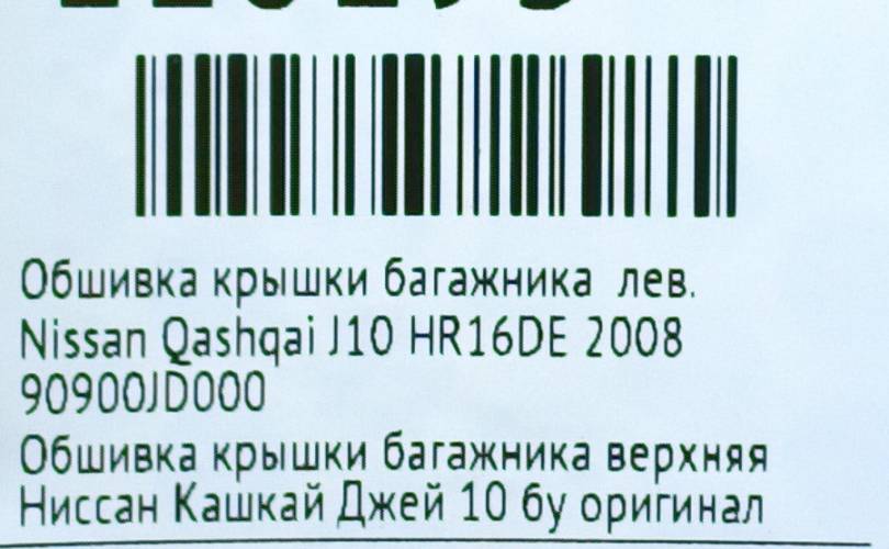 Обшивка крышки багажника Nissan Qashqai 2008 90900JD000 J10 HR16DE, левая