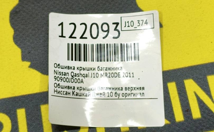Обшивка крышки багажника Nissan Qashqai 2011 90900JD00A J10 MR20DE