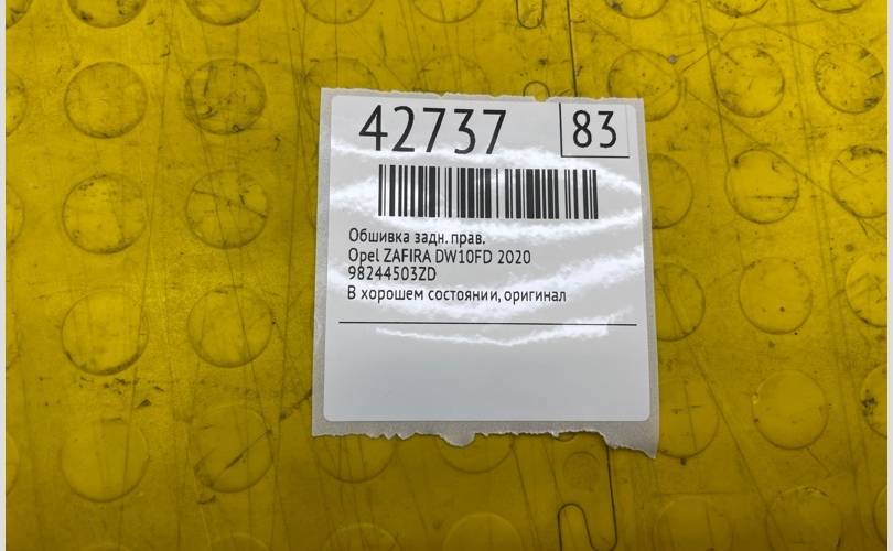 Обшивка Opel ZAFIRA Life 2020 98244503ZD DW10FD, задняя правая