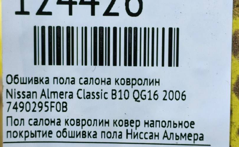 Обшивка пола ковролин Nissan Almera Classic 2006 7490295F0B B10 QG16