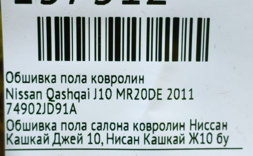 Обшивка пола ковролин Nissan Qashqai 2007 74902JD91A J10 MR20DE