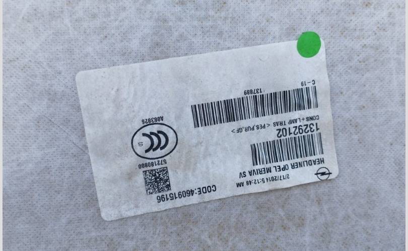 Обшивка потолка Opel Meriva B 2014 13292102 УНИВЕРСАЛ B14NEL