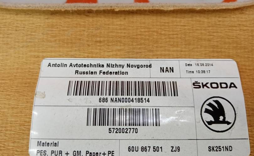 Обшивка потолка Skoda Rapid 2014-2020