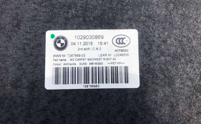 Обшивка заднего правого сидения сзади, состояние как новый, дефектов нет,