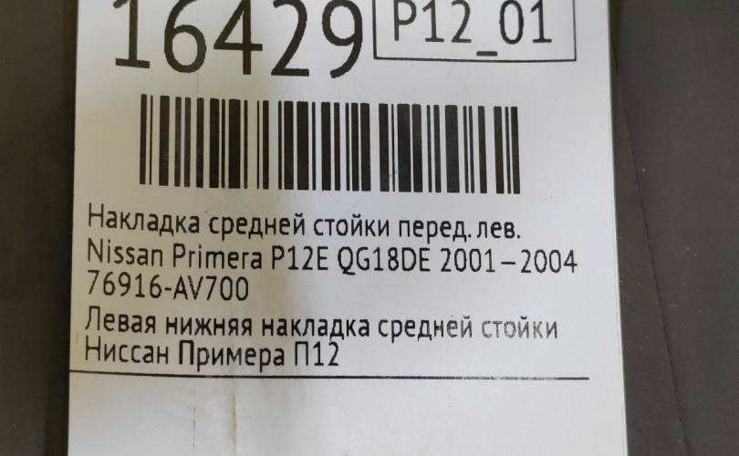 Обшивка стойки центральной нижняя Nissan Primera 2001—2004 76916AV700 P12 QG18DE, передняя левая