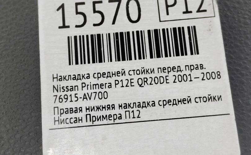 Обшивка стойки центральной нижняя Nissan Primera 2001—2008 76915AV700 P12 QR20DE, передняя правая