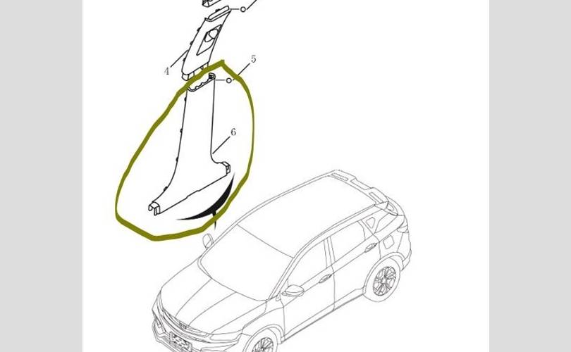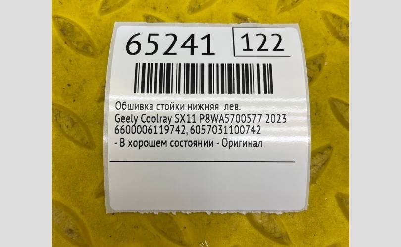 Обшивка стойки нижняя Geely Coolray 2023 6600006119742 SX11 P8WA5700577, левая