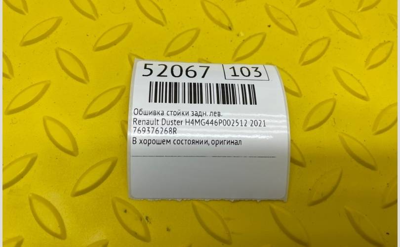 Обшивка стойки Renault Duster 2021 769376268R HJD H4MG446P002512, задняя левая