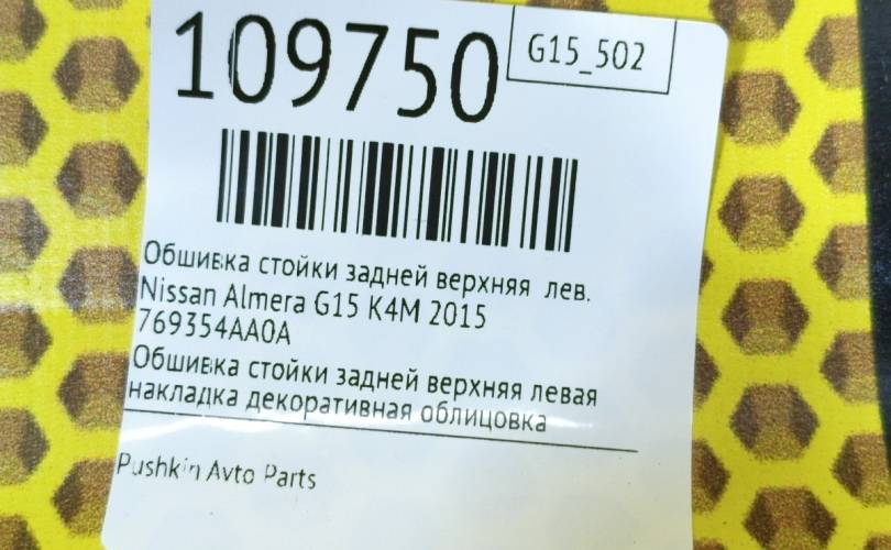 Обшивка стойки задней верхняя Nissan Almera 2015 769354AA0A G15 K4M, левая