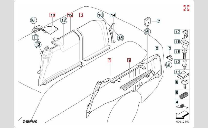 3 - Крепления полки багажника.
