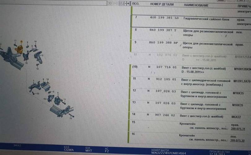 Опора двигателя Audi A8 D4 (2010—2014) CGWA 3.0