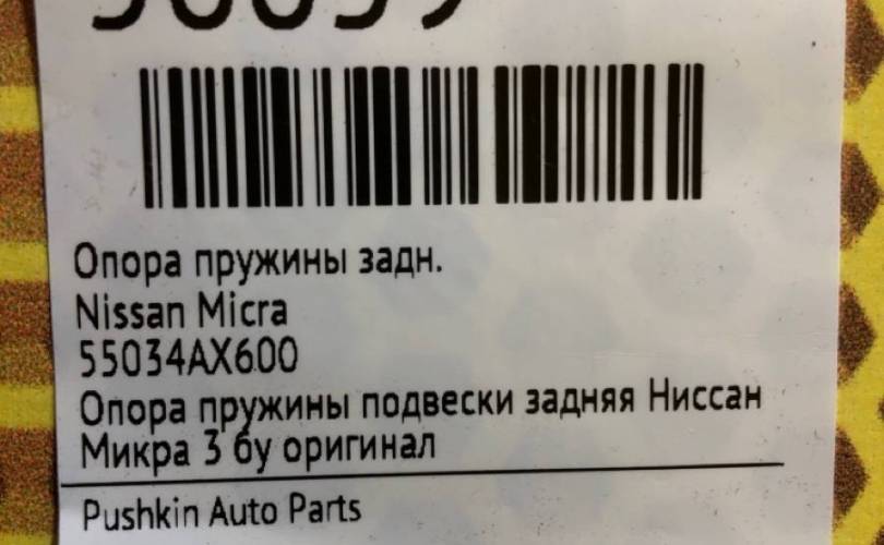 Опора пружины Nissan Micra 55034AX600, задняя