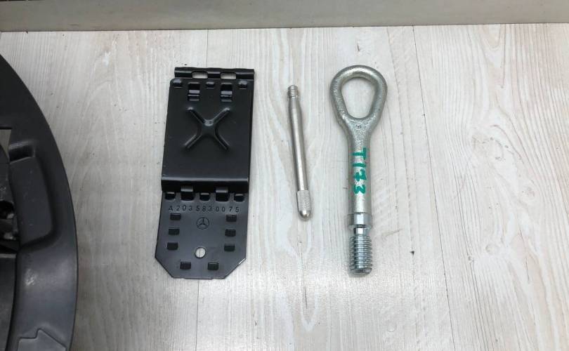 Ящик с инструментами ниша держатель дорожных инструментов центрирующий палец шпилька противооткат буксировочный крюк скоба проушина ухо буксировки Mercedes W203 Мерседес