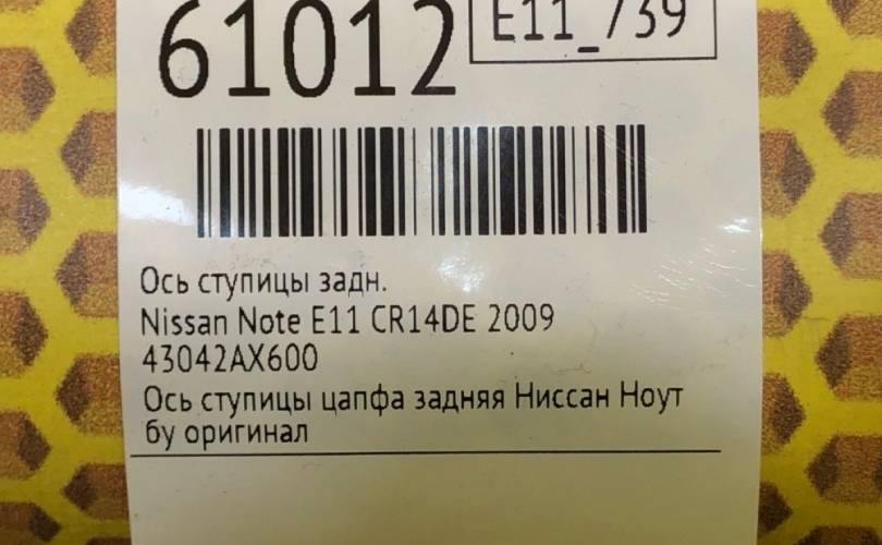 Ось ступицы Nissan Note 2009 43042AX600 E11 CR14DE, задний