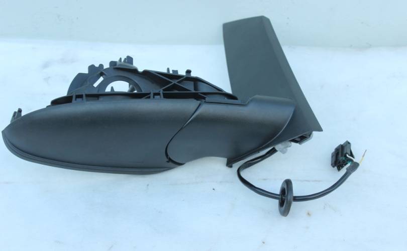 Неоригинальный корпус правого зеркала заднего вида (основание, крепление), в сборе с кронштейном моторчика регулировки зеркала, разъемом на 5 контактов и жгутом проводки зеркального элемента и его обогрева. Состояние нового. На разъеме дефект: отвалился 1 пин. Подходит для автомобиля Opel Astra J (Опель Астра Джей) с 2009 по 2016 год выпуска в кузове 5-ти дверный хэтчбек, седан или универсал.
