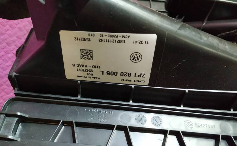 в сборе: клапан кондиционера 7P0820679A, мотор печки 7P0820021H, резистор F011500082, датчики температуры 1K0907543, проводка 7P6971565, моторчики задвижек и пр.