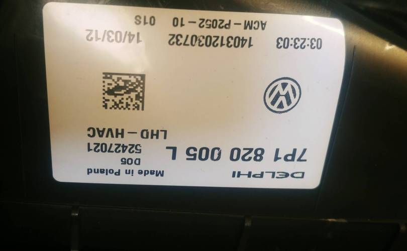 в сборе: клапан кондиционера 7P0820679A, мотор печки 7P0820021H, резистор F011500082, датчики температуры 1K0907543, проводкой 7P6971565 моторчики задвижек и пр.