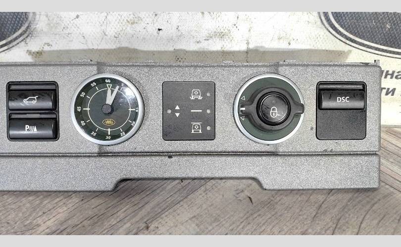 Панель управления подвеской с часами Land Rover Range Rover 3 L322 2002-2006 в хорошем состоянии. Правый руль, зеркальное расположение элементов