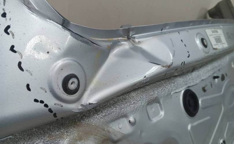 Вмятина. высверленная , автомобиль Volkswagen Polo (Sed RUS) 2013 года выпуска. Цвет кузова Серебристый. Код цвета 8E8E. Привод Передний. Трансмиссия 6-ти ступенчатый автомат. Тип кузова Седан. Модель двигателя CFNA объемом 1.6 литра.