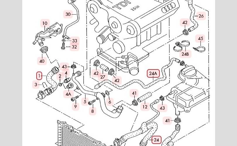 Патрубки Audi A6 2003 4B0121101T C5 AVANT QUATTRO BAU 2.5 TDI