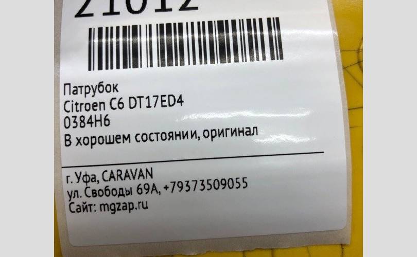 Патрубок Citroen C6 0384H6 DT17ED4