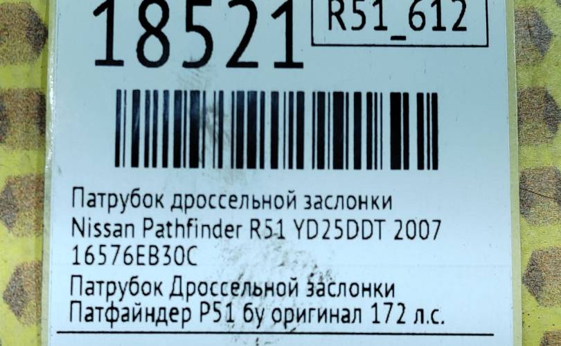 Патрубок дроссельной заслонки Nissan Pathfinder 2007 16576EB30C R51 YD25DDT