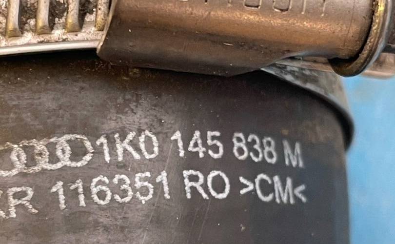 1K0145838M / 1K0 145 838 M / 1K0145838AG / 1K0 145 838 AGПатрубок интеркулера / Напорный шланг / Патрубок напорный / Патрубок турбины / Трубка нагнетаемого воздуха / Патрубок радиатора турбины / Рукав воздухозаборника1.8 / 2.0BZB / CAWB / CDAA / CCZA / CBFA / BWA / CCZB / CDAB / CCTA / BYT