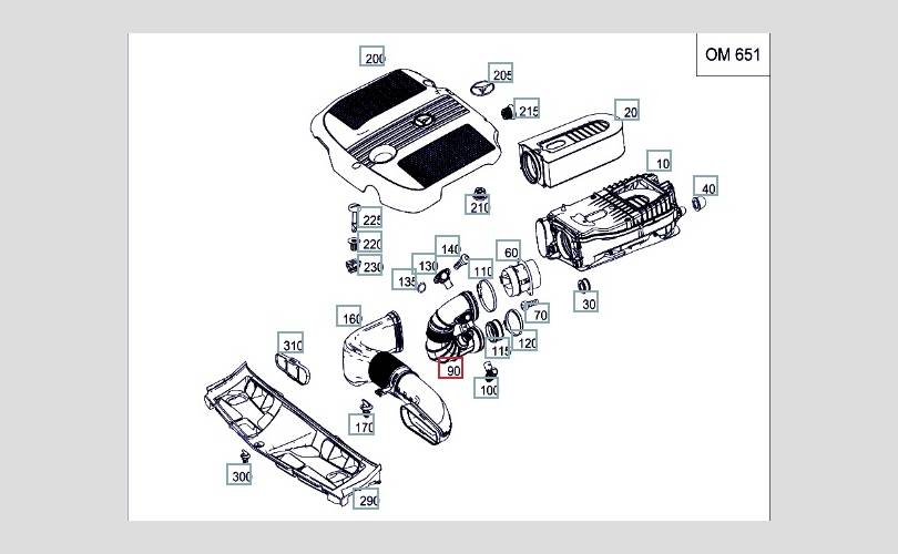 Патрубок воздушного фильтра Mercedes-Benz C-Class 2012 A6510900337 S204 OM651.911 2.2 CDI