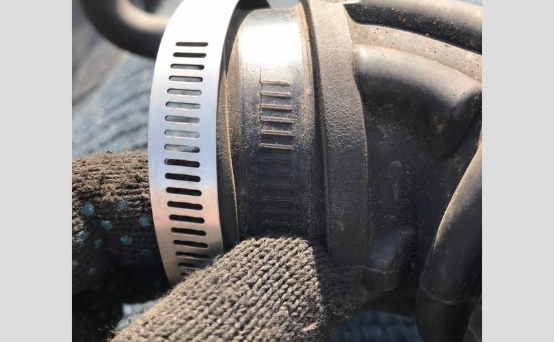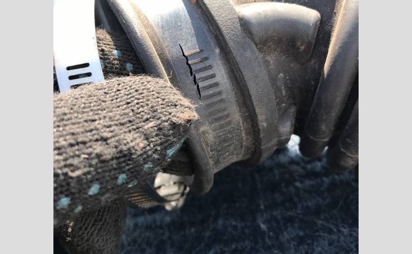 На патрубке есть 1 трещина под хомутом.