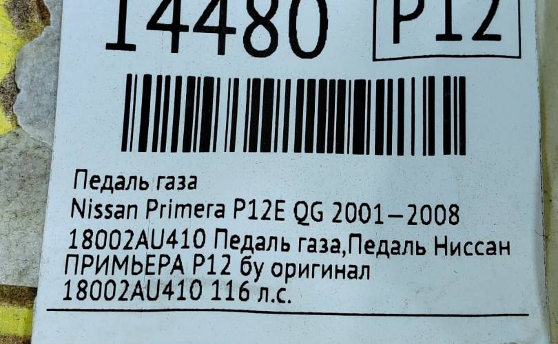 18002AU410 Педаль газа,Педаль Ниссан ПРИМЬЕРА Р12 бу оригинал 18002AU410 116 л.с.
