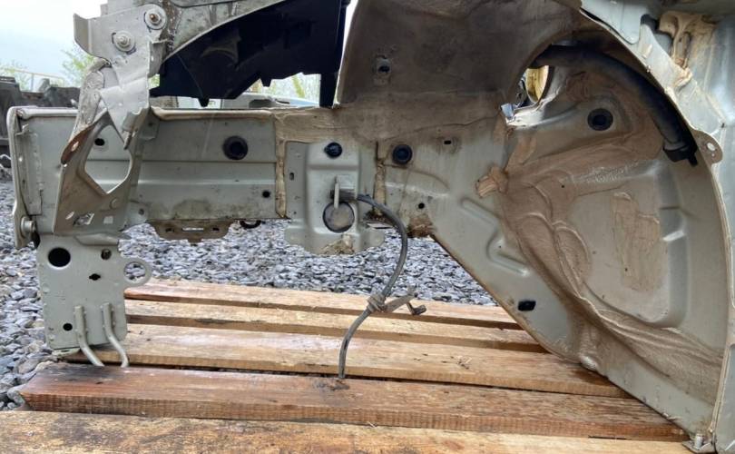 Передняя левая четверть(ланжерон). Разбор Рено Меган II, рестайлинг, 2007 год, (Renault Megane II 2007 г.) двс K4MC813 1.6 л. 113 л. с., АКПП, передний привод, кузов легковой седан, цвет бежевый, левый руль.