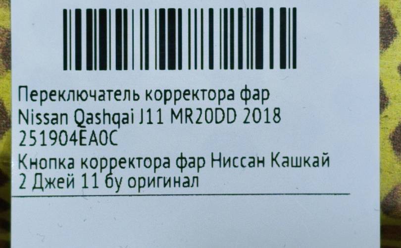 Переключатель корректора фар Nissan Qashqai 2018 251904EA0C J11 MR20DD