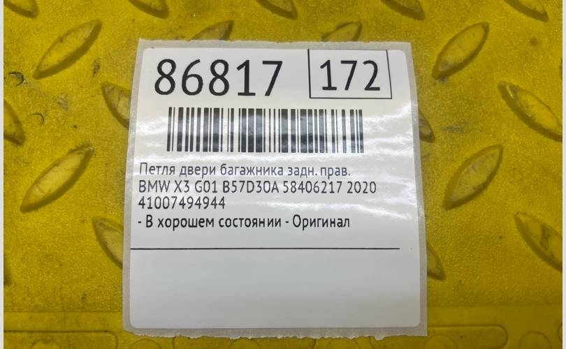 Петля двери багажника BMW X3 2020 41007494944 G01 B57D30A 58406217, задняя правая
