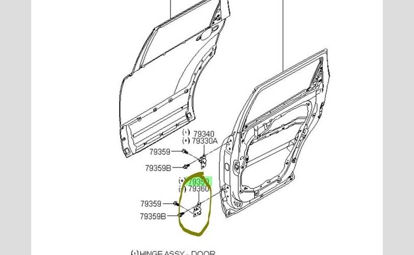 Петля двери Kia Mohave 2021 793502B020 HM2 D6EB, задняя левая